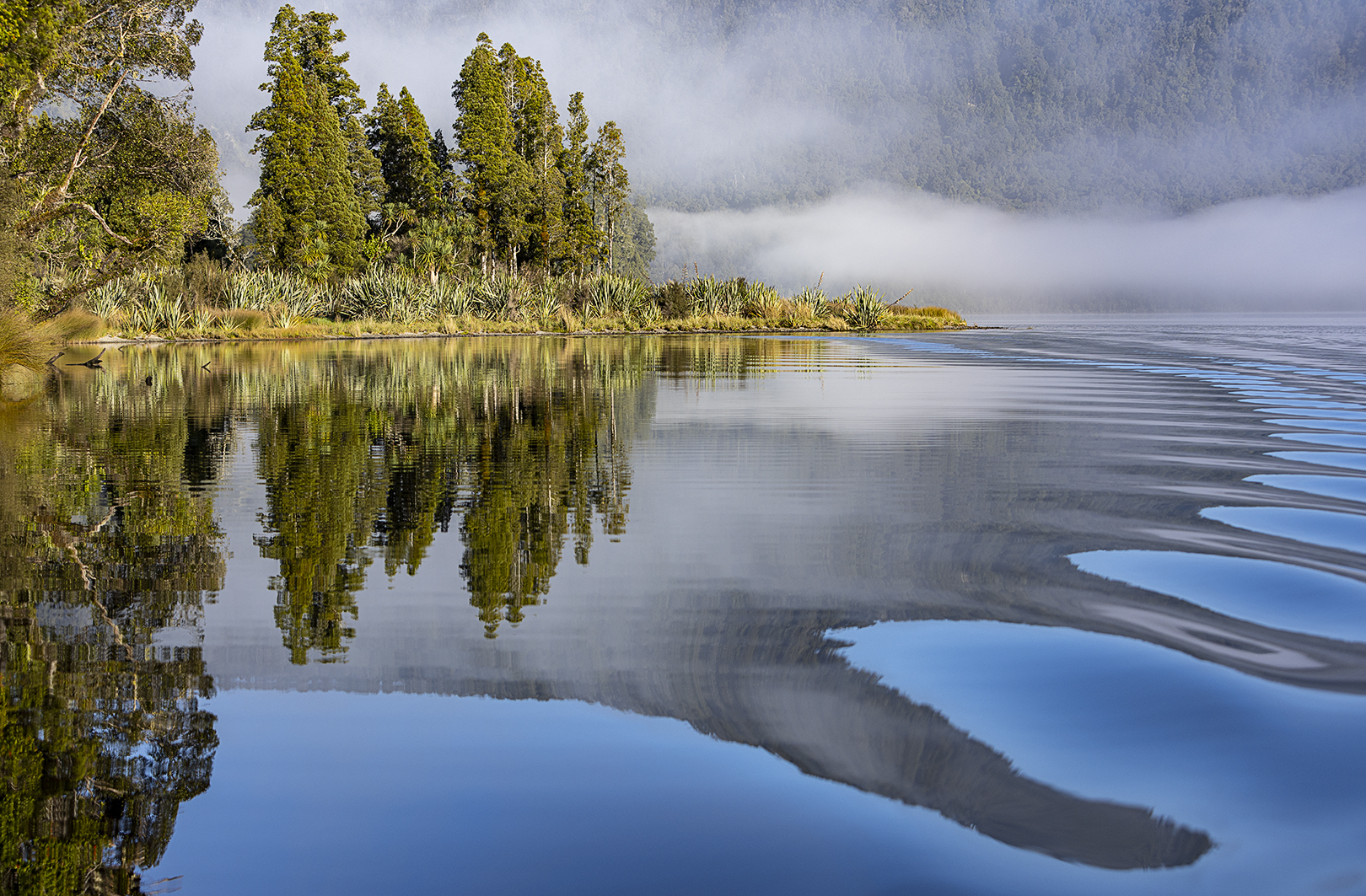 | A | Early on Lake Mapourika | To me, this conveys everything the given definition of landscape seeks. It truly captures a sense of “space” and “place” and tells a story of the scene. I particularly like the bottom branch on the focal tree, and the way the cobwebs are lit. Lovely work. |