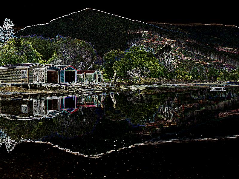 Boatshed Reflections - Very creative choice of software, it works well for a creative subject. The original photo is I imagine also quite lovely. This is a good composition.