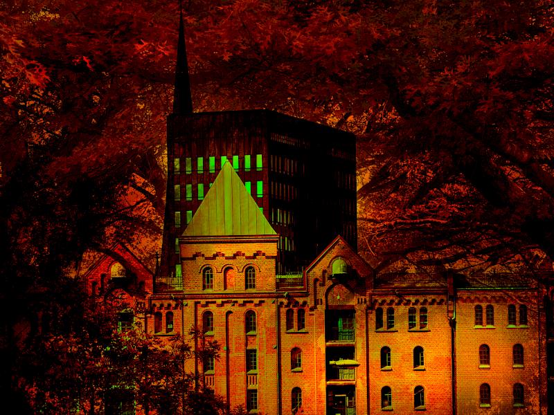 Notre Dame cathedral in flames - Definitely creative...reminds me of Anaglypta wall paper! I feel this is too strong a treatment and the white are on the right hand side could be toned down. What fun you have had.