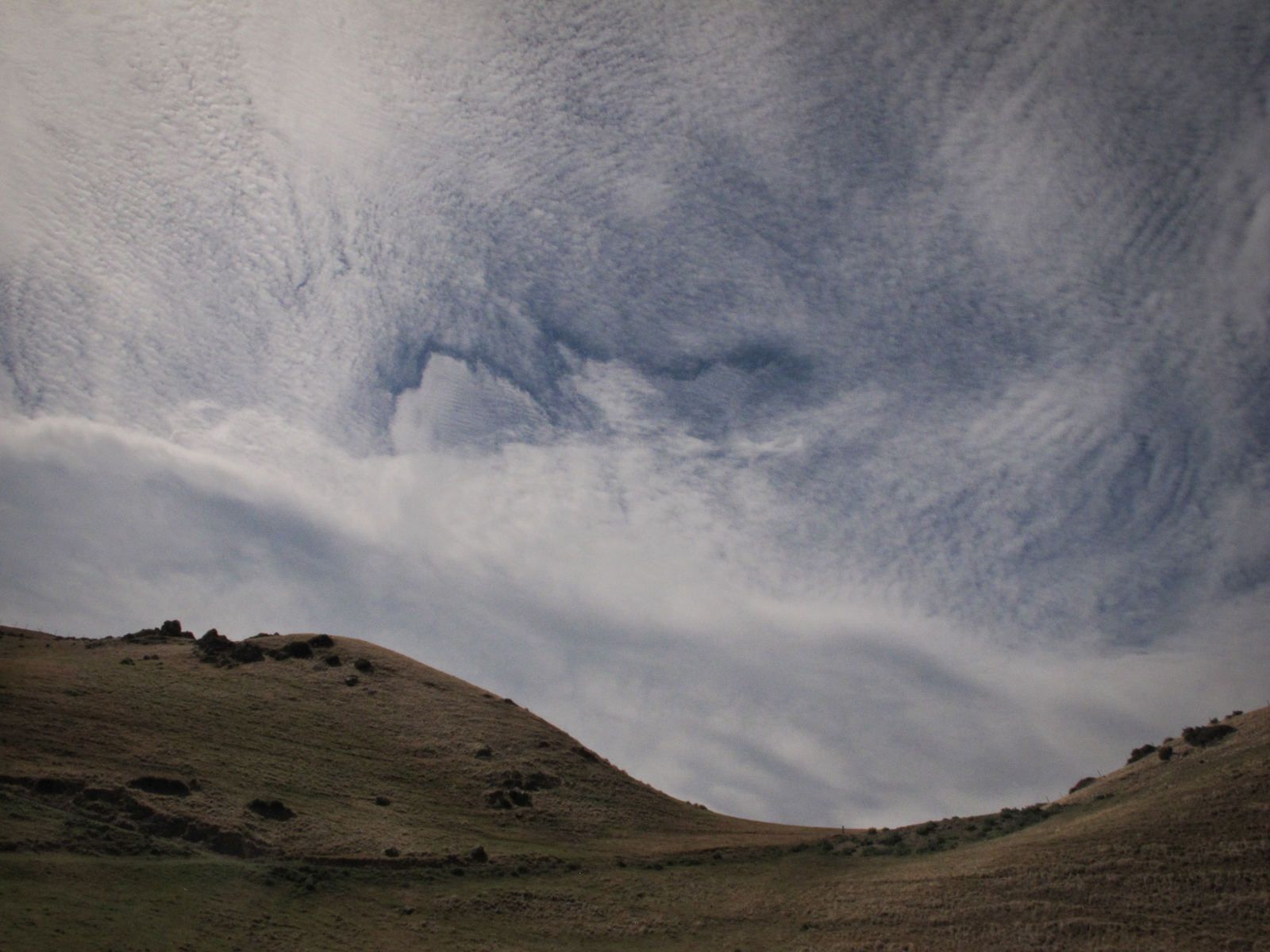 Quite a dramatic image, clouds are mostly cirrocumulus, similar to altocumulus but higher up and blobs are much smaller ( Ref: Neil Gordon) Movement of the hills and clouds ‘rolling’ giving it a lovely composition.